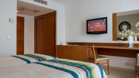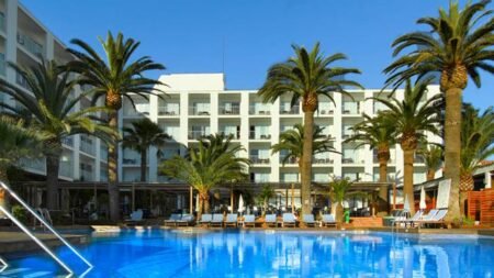 Het luxe Palladium Hotel Palmyra ligt aan de mooie wandelboulevard van San Antonio. Wil je een dagje naar het strand, dan hoef je dus alleen maar deze boulevard over te steken en je kunt je handdoek al neerleggen. Het bruisende centrum met bars, restaurants en winkels is ook vlakbij: na een leuke, korte wandeling ben je er al!