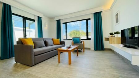 Wat tijd doorbrengen met het gezin of juist samen rustig genieten? Deze typerende witte appartementen bieden door de ruime opzet en ligging voor iedereen dé perfecte uitvalsbasis. Zo geniet jij op een van de heerlijke plekjes in de mooi aangelegde tuin. Terwijl de kids spetterplezier in het zwembad beleven. Met alle voorzieningen bij de hand tover je in je eigen keuken, de vers afgehaalde broodjes met gemak om in een smakelijk ontbijt voor het hele gezin. De gerenoveerde bungalows en appartementen zijn modern ingericht, dus het is hier heerlijk vertoeven. De kust verken je door heerlijk te vertoeven op één van de stranden in de buurt. Iets verderop kan ook.