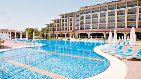 Welkom in dit hotel in Side. De prachtig onderhouden groene tuin, een all inclusive concept waar je dag én nacht van kunt genieten, en meerdere à la carterestaurants waar je prachtig uitzicht hebt over zee. Dit zijn nog maar een paar punten die dit hotel zo bijzonder maken. Wanneer je binnenstapt, proef je de ontspannen sfeer meteen. Alle kamers zijn zeer comfortabel ingericht, met als aanrader de ruime Lake Villa's. Een eigen zwembad voor de deur, weg van de animatie en glijbanenpret, voor niets dan ontspanning. Natuurlijk kan je de drukte zo opzoeken. Jouw vakantie, jouw keuze.