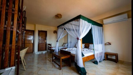 Palumbo Waves Hotel ligt op loopafstand van het prachtige strand van Kendwa, één van de mooiste plekken op Zanzibar. Dit gastvrije hotel beschikt over een verfrissend zwembad, ideaal om in te ontspannen na een dag aan het strand. Voor maaltijden kun je terecht in het restaurant, waar gevarieerde gerechten worden geserveerd. Er zijn ook twee bars waar je kunt genieten van verfrissende drankjes. De kamers zijn comfortabel en stijlvol ingericht, wat zorgt voor een aangenaam verblijf. Je verblijft op basis van All Inclusive, wat betekent dat je volop kunt genieten van de faciliteiten en het eten zonder je ergens zorgen over te maken. Dankzij de rustige locatie en de nabijheid van het strand is Palumbo Waves Hotel een fijne plek om te ontspannen en te genieten van alles wat Zanzibar te bieden heeft!