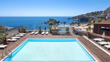 Zomer Wanneer je tussen 01-04-2025 en 31-10-2025 in deze accommodatie verblijft, is onderstaande informatie van toepassing. * Ligging * Openbaar strand Lido di Naxos op circa 10 meter * Zandstrand * Dichtstbijzijnde restaurant op circa 50 meter * Dichtstbijzijnde bar op circa 50 meter * Giardini Naxos op circa 50 meter * Taormina op circa 6 kilometer * Bushalte op circa 300 meter * Algemeen & faciliteiten * 1 gebouw * Maximaal 5 verdiepingen * 35 kamers * Receptie * 24 uur per dag * Lift * Wifi in één van de openbare ruimtes * Doktersservice tegen betaling * op aanvraag * Openbare parkeergelegenheid * Restaurants & bars * Buffetrestaurant * Restaurant * Drinkgelegenheid * Bar * Zwembaden * Buitenzwembad * Zoetwater * Zonneterras * Ligbedden gratis * Parasol gratis * Verzorging * Logies & Ontbijt * Ontbijt in buffetvormHotelkamers * 2-persoonskamer Standaard (Classic) DZ * Oppervlakte circa 15 m² * Airconditioning * Kluisje * Televisie * Eet- en drinkfaciliteiten * Mini koelkast * Badkamer met douche, toilet, föhn en badjassen * Wifi * Balkon of terras (zitje) * 2-persoonskamer Superior Zeezicht DSM * Oppervlakte circa 15 m² * Zeezicht * Airconditioning * Kluisje * Televisie * Eet- en drinkfaciliteiten * Mini koelkast * Badkamer met douche, toilet en föhn * Wifi * Balkon of terras (zitje)