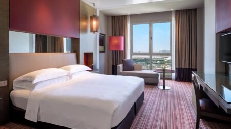 Check in bij een stijlvolle uitvalsbasis net buiten het bruisende centrum van Abu Dhabi. Hier combineren Arabische charme en moderne luxe zich perfect. Je verblijft in een ruime kamer met uitzicht op de stad. Met clublounge toegang krijg je ook gratis snacks en drankjes. Relax overdag in het zwembad, de spa of de gym. Met de gratis shuttle sta je snel op het strand of in Marina Mall. 's Avonds geniet je van Italiaanse klassiekers en sappige grills in een van de restaurants.