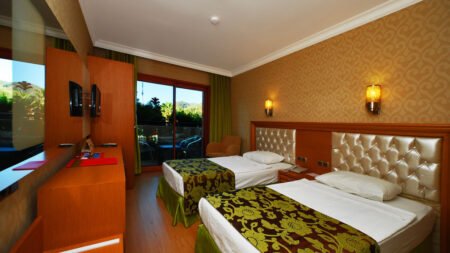 Direct naar: * Ligging () * Faciliteiten () * Restaurants & Bars () * Hotelkamers () * Sport & Ontspanning () * Kinderfaciliteiten () * Zwembaden & Strand () * Verzorging () Ligging: Pasa Bey * Centraal gelegen in Marmaris * Op ca. 500 m van het strand * Diverse winkeltjes, barretjes en winkels op ca. 300 m lopen * Bushalte in de directe omgeving Faciliteiten * 2 gebouwen * Maximaal 3 verdiepingen * 134 kamers * Lobby * Liften, in elk gebouw een lift aanwezig * 24-uursreceptie * Kapsalon* * Minimarkt* * Wasservice* * Doktersservice* * Roomservice* * Kapsalon* * Wifi in het gehele hotel * Prive parkeergelegenheid * tegen betaling Restaurants & bars * Buffetrestaurant met binnen- en buitengedeelte * Poolbar Hotelkamers * Standaardkamer (1-3 kamers) * Ca. 19 m² * Airconditioning * Kluisje* * Televisie * Telefoon * Minibar * Wifi * Douche * Toilet * Föhn * Balkon met zitje Sport & Ontspanning * Binnenzwembad * Sauna * Turks bad * Bubbelbad * Massages en behandelingen* * Beperkt animatieprogramma Kinderfaciliteiten * Afgescheiden kindergedeelte in het zwembad * Babybedjes (op aanvraag) Zwembaden & Strand * Zwembad in de tuin * Afgescheiden kindergedeelte in het zwembad * Zonneterras * Ligbedden, matrasjes, parasols (zwembad) * Badhanddoekenservice (zwembad) Verzorging Zomer: Pasa Bey * Verblijf o.b.v. All Inclusive: * Ontbijt in buffetvorm (07.30-10.30 uur) * Lunch in buffetvorm (12.30-14.00 uur) * Diner in buffetvorm (19.00-21.00 uur) * Snacks (14.30-16.00 uur) * Koffie, thee en patisserie (17.00-18.00 uur) * Middernachtsnacks (23.00-23.30 uur) * Lokale (non-)alcoholische dranken (10.00-00.00) * Tegen betaling: import dranken, dranken in flessen, ijs, roomservice