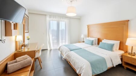 De naam verraadt het misschien al, maar dit hotel heeft alles in huis voor een zonnige familievakantie. Het hotel bruist van de activiteiten voor jong en oud. Speel een potje tennis tegen elkaar of leer de allerkleinsten golfen bij de minigolf. De kleinschaligheid benadrukt waar je voor komt family time. Toe aan een avondje onbezorgd genieten op het terras? Boek dan gewoon een oppas voor de avond. Ontspan in de jacuzzi of geniet van een welverdiende massage. Wil je graag de omgeving ontdekken? Na een korte wandeling van 10 minuten sta je in de pittoreske jachthaven. Slenter door de charmante straten gevuld met lokale winkels en maak kennis met het ontspannen tempo van Griekenland. Hier kan je wel aan wennen.