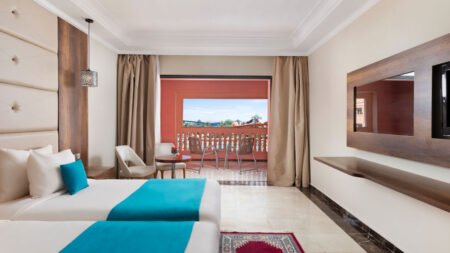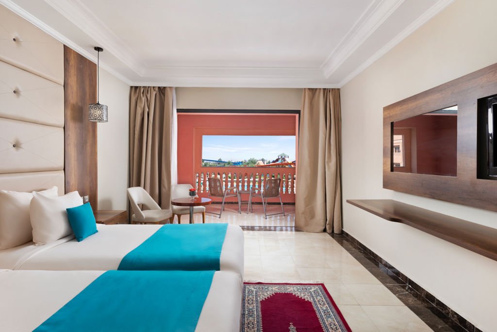 Op zoek naar een zonovergoten vakantie vol actie én ontspanning? Het Pickalbatros Aqua Fun Club Resort in Marrakech combineert het beste van twee werelden: een reusachtig waterpark en een comfortabel verblijf in Marokkaanse sferen. Dit moderne resort ligt op slechts 15 minuten van het bruisende stadscentrum, maar voelt als een wereld op zich. Met maar liefst 14 zwembaden, 58 glijbanen, een uitgebreid animatieprogramma en een kidsclub is dit het paradijs voor gezinnen met kinderen. Terwijl de kleintjes zich uitleven in het aquapark of knutselen met het animatieteam, nip jij van een cocktail aan de Blue Bar of ontspan je in de spa. Geniet dagelijks van uitgebreide buffetten met lokale én internationale smaken, en dineer in stijl bij Millennium, Tajine of het sfeervolle Alfredo Restaurant. De comfortabele familiekamers en suites zijn van alle gemakken voorzien, zoals airco, minibar, balkon en gratis wifi. En met het all inclusive-concept ben je verzekerd van zorgeloze dagen vol zon, zwemplezier en lekker eten.