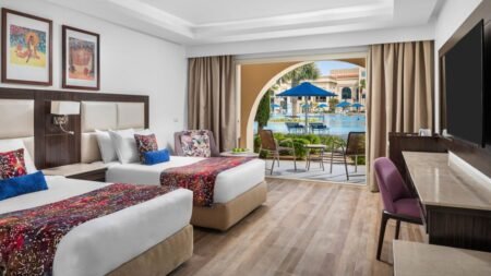 Winter Wanneer je tussen 01-11-2025 en 31-03-2026 in deze accommodatie verblijft, is onderstaande informatie van toepassing. * Ligging * Privéstrand * Zandstrand * Ligbedden met matrasjes * Parasol * Dichtstbijzijnde winkel op circa 300 meter * Dichtstbijzijnde restaurant op circa 300 meter * Dichtstbijzijnde bar op circa 300 meter * Hurghada op circa 7 kilometer * Bushalte op circa 100 meter * Algemeen & faciliteiten * Kindvriendelijk complex * 3 gebouwen * Maximaal 5 verdiepingen * 473 kamers * Receptie * 24 uur per dag * Lobby * 12 liften * Lift in elk gebouw * Bagageruimte * Doucheruimte bij aankomst en vertrek * Wifi in alle openbare ruimtes * Wasservice tegen betaling * Doktersservice tegen betaling * Tuin * Restaurants & bars * 3 buffetrestaurants * À-la-carterestaurant * Restaurant met internationale specialiteiten (vooraf reserveren) één keer per verblijf gratis * Foodtruck * Roomservice tegen betaling * 7 drinkgelegenheden * 6 bars * Shisha bar tegen betaling * Activiteiten & ontspanning * Aerobics * Boccia * Darts * Duikcentrum tegen betaling * Fitness * Tafeltennis * Tennis * Volleybal * Waterpolo * Watersporten tegen betaling * Yoga * Spafaciliteiten * Sauna tegen betaling * Hamam tegen betaling * Massages tegen betaling * Schoonheidsbehandelingen tegen betaling * Animatie voor volwassenen- * Animatie voor kinderen * Shows * Meerdere keren per week * Livemuziek * Meerdere keren per week * Zwembaden * 2 buitenzwembaden * Eén van deze zwembaden is verwarmd tussen ca. november en maart * 4 buitenzwembaden voor kinderen * Verwarmd tussen ca. november en maart * 12 glijbanen * Zonneterras * Ligbedden * Parasol * Badhanddoekenservice * Kinderfaciliteiten * Mini club (4-12 jaar) * Meerdere keren per week * Minidisco * Buitenspeeltuin * Babybedje op aanvraag via ons contact center * Verzorging * All Inclusive * Ontbijt in buffetvorm (05.00-10.00 uur) * Laat ontbijt in buffetvorm (10.00-11.00 uur) * Lunch in buffetvorm (12.30-14.30 uur) * Diner in buffetvorm (18.00-21.30 uur) * Snacks (12.00-17.00 uur) * IJs (10.00-22.00 uur) * Middernachtsnack (21.30-00.00 uur) * Selectie lokale (non-)alcoholische drankjes (10.00-00.00 uur) * Tegen betaling: dineren in het à-la-carterestaurant en roomserviceHotelkamers * 2-persoonskamer Deluxe Zwembadzicht DDP * Oppervlakte van circa 40 m² * Zwembadzicht * Airconditioning * Kluisje * Televisie * Telefoon tegen betaling * Eet- en drinkfaciliteiten * Koffie- en theefaciliteiten * Minibar * Dagelijks aangevuld met water * Badkamer bad of douche, toilet en föhn * Wifi * Balkon of terras (zitje) * 2-persoonskamer Deluxe Zijzeezicht DDI * Oppervlakte van circa 40 m² * Zijzeezicht * Airconditioning * Kluisje * Televisie * Telefoon tegen betaling * Eet- en drinkfaciliteiten * Koffie- en theefaciliteiten * Minibar * Dagelijks aangevuld met water * Badkamer bad of douche, toilet en föhn * Wifi * Balkon of terras (zitje) * 2-persoonskamer Deluxe Zeezicht DDM * Oppervlakte van circa 40 m² * Zeezicht * Airconditioning * Kluisje * Televisie * Telefoon tegen betaling * Eet- en drinkfaciliteiten * Koffie- en theefaciliteiten * Minibar * Dagelijks aangevuld met water * Badkamer bad of douche, toilet en föhn * Wifi * Balkon of terras (zitje) * Junior suite Standaard Zwembadzicht JZP * Oppervlakte circa 70 m² * Zwembadzicht * Zee- en zwembadzijde * Eén grote kamer * Airconditioning * Kluisje * Televisie * Telefoon tegen betaling * Eet- en drinkfaciliteiten * Koffie- en theefaciliteiten * Minibar * Gevuld met water * Badkamer douche, bubbelbad, toilet, föhn, badjassen (op aanvraag) en badslippers (op aanvraag) * Wifi * Balkon (zitje) * Junior suite Standaard Zeezicht JZM * Oppervlakte circa 70 m² * Zeezicht * Zee- of zwembadzijde * Eén grote kamer * Airconditioning * Kluisje * Televisie * Telefoon tegen betaling * Eet- en drinkfaciliteiten * Koffie- en theefaciliteiten * Minibar * Gevuld met water * Badkamer douche, bubbelbad, toilet, föhn, badjassen (op aanvraag) en badslippers (op aanvraag) * Wifi * Balkon (zitje)