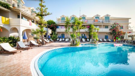 Zomer Wanneer je tussen 21-04-2025 en 10-10-2025 in deze accommodatie verblijft, is onderstaande informatie van toepassing. * Ligging * Openbaar strand op circa 300 meter * Centrum van Laganas op circa 300 meter * Dichtstbijzijnde winkel op circa 100 meter * Dichtstbijzijnde restaurant op circa 100 meter * Dichtstbijzijnde bar op circa 100 meter * Cameo Island op circa 400 meter * Zakynthos City op circa 9 kilometer * Bushalte op circa 300 meter * Algemeen & faciliteiten * 2 gebouwen * Maximaal 3 verdiepingen * 35 kamers * Receptie * Lobby * Bagageruimte * Wifi in alle openbare ruimtes * Tuin * Privé parkeergelegenheid * Restaurants & bars * À-la-carterestaurant * Drinkgelegenheid * Bar * Activiteiten & ontspanning * Spafaciliteiten * Massages op afspraak tegen betaling * Thema-avonden * Eén keer per week * Zwembaden * Buitenzwembad * Zoetwater * Buitenzwembad voor kinderen * Zoetwater * Zonneterras * Ligbedden met matrasjes * Parasol * Verzorging * LogiesHotelkamers * Studio Voordeel SE * Locatie, formaat, uitzicht en/of faciliteiten kunnen afwijken ten opzichte van andere kamertypes * Oppervlakte van circa 15 m² * Airconditioning tegen betaling * Kluisje tegen betaling * Televisie * Eet- en drinkfaciliteiten * Koffie- en theefaciliteiten * Mini koelkast * Badkamer met douche, toilet en föhn * Wifi * Balkon of terras (zitje) * Studio Standaard SZ * Oppervlakte circa 25 m² * Zwembadzicht * Airconditioning tegen betaling * Kluisje tegen betaling * Televisie * Eet- en drinkfaciliteiten * Koffie- en theefaciliteiten * Mini koelkast * Badkamer met douche, toilet en föhn * Wifi * Balkon of terras (zitje) * 2-kamerappartement Standaard 2A1 * Oppervlakte tussen 38 en 42 m² * Tuin- of zwembadzicht * Woon-/slaapkamer * Eén slaapkamer * Airconditioning tegen betaling * Kluisje tegen betaling * Televisie * Kitchenette * Kookstel met 2 kookplaten * Koffie- en theefaciliteiten * Mini koelkast * Badkamer met douche, toilet en föhn * Wifi * Balkon of terras (zitje) * 2-kamerappartement Standaard 2A2 * Oppervlakte tussen 38 en 42 m² * Tuin- of zwembadzicht * Woon-/slaapkamer * Eén slaapkamer * Airconditioning tegen betaling * Kluisje tegen betaling * Televisie * Kitchenette * Kookstel met 2 kookplaten * Koffie- en theefaciliteiten * Mini koelkast * Badkamer met douche, toilet en föhn * Wifi * Balkon of terras (zitje)