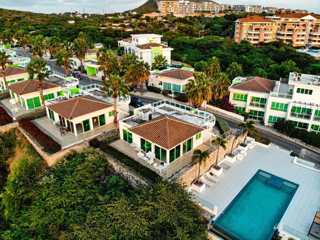 Zandstrand op steenworp afstand, Uitzicht op de Piscadera Bay, 5-sterren PADI duikcentrum vlakbij, Moderne en strakke villa's, Relaxen aan het zwembad, Volledig ingerichte appartementen & inclusief transfers.