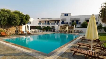 Dit hotel heeft een fantastische locatie op het Griekse eiland Paros. Het ligt aan de rand van het centrum van de hoofdstad Parikia. Zo vind je in de buurt veel winkels en restaurants, maar heb je toch lekker de rust. In de mooie tuin van Polos ligt een zwembad waar je ultiem gaat ontspannen en af en toe een frisse duik kunt nemen. Het hotel is eenvoudig met Grieks blauwe en witte tinten. Bezoek ook het typisch Griekse Parikia met haar sfeervolle straten en witte huizen. Zin om naar het strand te gaan? Wandel de straat uit en je bent er al. Gooi je slippers uit en geniet!