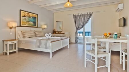 Appartementen Popi Studios wordt gerund door een vriendelijke familie en ligt in het rustige dorp Arkassa. Hier kun je in één van de restaurants een drankje doen en souvenirs kopen in de winkels. Even verderop loop je met je voeten in het zand en is het tijd voor een verfrissende duik in zee. Wil je een dag bij je appartement blijven? Ook daar kan je heerlijk relaxen met een glas wijn in de hand en een snack aan het zwembad. Wil je liever op ontdekking gaan? Arkassa is afkomstig van de antieke stad Arkesia. Deze oude stad lag op een nabijgelegen heuvel waar je nu nog de overblijfselen van vind. Ga naar de top van de heuvel en laat je verrassen door het uitzicht over de omgeving en de zee. Dit is het echte Griekse leven.