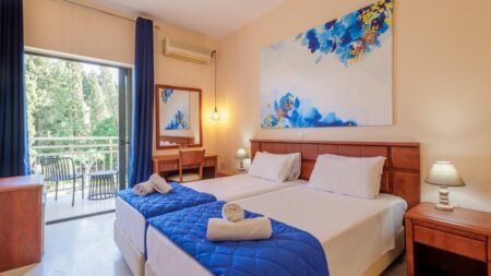 Duik zo het zwembad in, Strand op loopafstand, Smullen van het ontbijt, Griekse gastvrijheid, Tip: bezoek Corfu-stad, Lichte kamers & inclusief transfers.