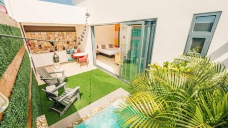Ervaar ultiem gemak in dit stijlvolle verblijf. Ontspan bij het ruime zwembad, waar je een enkele keer per week geniet van sfeervolle loungemuziek van een live DJ. Je verblijft in een elegant ingericht appartement in authentieke Arubaanse stijl, compleet met een comfortabel bed en een plungepool. Pure verwennerij. Hoewel het verblijf niet direct aan het strand ligt, bereik je na vijf minuten rijden met de auto het prachtige Eagle Beach met wit zand en turquoise water. 's Avonds ontdek je het bruisende centrum met gezellige bars, heerlijke restaurants en een levendig nachtleven.