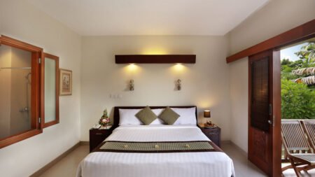 Winter Wanneer je tussen 01-04-2025 en 31-03-2026 in deze accommodatie verblijft, is onderstaande informatie van toepassing. * Ligging * In het centrum van Sanur * Gelegen aan het openbare strand (Sanur Beach) * Privégedeelte van de accommodatie * Zandstrand * Ligbedden gratis * Parasol gratis * Dichtstbijzijnde winkel op circa 500 meter * Dichtstbijzijnde restaurant op circa 500 meter * Dichtstbijzijnde bar op circa 1 kilometer * Bajra Sandhi op circa 3 kilometer * Denpasar op circa 4 kilometer * Algemeen & faciliteiten * Boutique hotel * 7 gebouwen * Maximaal 2 verdiepingen * 45 kamers * Receptie * 24 uur per dag * Lobby * Geen liften * Wifi in alle openbare ruimtes gratis * Wasservice tegen betaling * Doktersservice tegen betaling * Tuin * Privé parkeergelegenheid * Restaurants & bars * À-la-carterestaurant * Roomservice tegen betaling * Activiteiten & ontspanning * Spafaciliteiten * Livemuziek * Meerdere keren per week * Zwembaden * Buitenzwembad * Zoetwater * Zonneterras * Ligbedden gratis * Parasol gratis * Badhanddoekenservice gratis * Verzorging * Logies & Ontbijt * Ontbijt in buffetvorm of à la carte * Halfpension * Ontbijt in buffetvorm of à la carte * Diner in buffetvorm of à la carte * Volpension * Ontbijt in buffetvorm of à la carte * Lunch in buffetvorm of à la carte * Diner in buffetvorm of à la carteHotelkamers * 2-persoonskamer Superior Tuinzicht DS * Oppervlakte circa 26 m² * Laaggelegen * Tuinzicht * Airconditioning gratis * Kluisje gratis * Televisie gratis * Telefoon tegen betaling * Eet- en drinkfaciliteiten * Koffie- en theefaciliteiten gratis * Minibar tegen betaling * Badkamer met douche, toilet en föhn * Wifi gratis * Balkon (zitje) * 2-persoonskamer Deluxe Tuinzicht DD * Oppervlakte circa 30 m² * Op de begane grond * Tuinzicht * Airconditioning gratis * Kluisje gratis * Televisie gratis * Telefoon tegen betaling * Eet- en drinkfaciliteiten * Koffie- en theefaciliteiten gratis * Minibar tegen betaling * Badkamer met douche in bad, toilet en föhn * Wifi gratis * Terras (zitje)