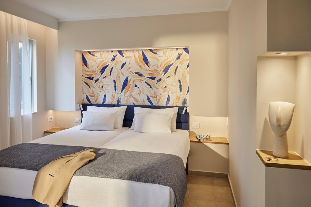 Spring in het zwembad op 60 meter boven de zee. ROBINSON DAIDALOS is op een klif gebouwd, de lift brengt je zo naar de Egeïsche Zee. Het is eigenlijk een klein dorp met smalle straatjes en kleurige en geurige bougainville. Waar je ook staat, het uitzicht op de Egeïsche Zee is hier altijd fijn. Hier heerst Poseidon, de Griekse God van de Zee. Door de lekkere wind op zee kun je altijd heerlijk zeilen en surfen. Elke kamer heeft een eigen balkon of terras, airconditioning, satelliettelevisie en vanuit de meeste kamers kijk je uit op de Egeïsche Zee. Dat is lekker wakker worden hoor….