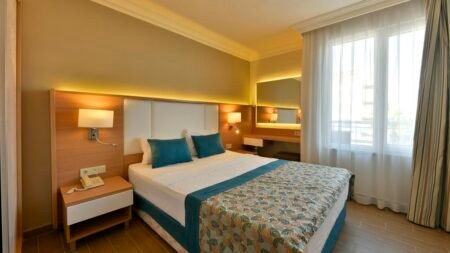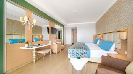 Direct naar: * Ligging () * Faciliteiten () * Restaurants & Bars () * Hotelkamers () * Sport & Ontspanning () * Kinderfaciliteiten () * Zwembaden & Strand () * Verzorging () Ligging: Royal Garden Beach (voorheen Royal Garden Select & Suite) * Direct aan het privéstrand * Op ca. 500 meter van Konakli * Alanya op ca. 14 kilometer * Bushalte op ca. 50 meter * Restaurants op ca. 200 meter * Winkels en bars op ca. 100 meter Faciliteiten * 3 gebouwen met maximaal 6 verdiepingen * In elk gebouw is een lift aanwezig * 419 kamers * 24-uursreceptie * Bagageruimte * 2 Lobby’s * Tuin * Wifi * Kapsalon* * Winkeltjes en minimarkt* * Wasservice* * Doktersservice* * Openbare parkeerplaatsen *Tegen betaling Restaurants & bars * 2 buffetrestaurants * 4 à-la-carterestaurants (1x per verblijf gratis, vooraf reserveren) * 4 bars * Disco Hotelkamers * Standaardkamer (1-2 personen) * Ca. 20 m² * Telefoon* * Airconditioning * Satelliettelevisie * Minibar * Kluisje * Wifi * Douche * Toilet * Föhn * Balkon met zitje *Tegen betaling * Premiumkamer (1-3 personen) * Ca. 35 m² * Dezelfde faciliteiten als de standaardkamer * Familiekamer annex (2-4 personen) * Ca. 42 m² * Gelegen in de bijgebouwen * Bestaat uit 2 ruimtes * Dezelfde faciliteiten als de standaardkamer * Familiekamer Hoofdgebouw (2-4 personen) * Ca. 42 m² * Gelegen in het hoofdgebouw * Bestaat uit 2 ruimtes, met slaapbank * Dezelfde faciliteiten als de standaardkamer * Familiekamer Zijgebouw (2-4 personen) * Ca. 42 m² * Gelegen in het hoofdgebouw * Bestaat uit 2 ruimtes, met slaapbank * Dezelfde faciliteiten als de standaardkamer Sport & Ontspanning * Fitness * Aerobics * Beachvolleybal * Darts * Tafeltennis * Gameroom* * Duikcenter* * Watersporten aan het strand* * Turks bad * Sauna * Binnenzwembad * Massages* * 6 dagen per week entertainment *Tegen betaling Corendon-gasten krijgen 20% korting op het spapakket. (geldig voor boekingen na 07.04.2025) Kinderfaciliteiten * Meerdere kinderzwembaden * Miniclub (4-12 jaar) 6 dagen per week * Minidisco * Speeltuintje * Babybed beschikbaar Zwembaden & Strand * Meerdere buitenzwembaden (1 zwembad is van 28 maart 2025 tot mei en van 15 oktober tot het einde van het seizoen verwarmd) * Zonneterras * Privéstrand * Ligbedden, matrasjes en parasols gratis (zwembad en strand) * Gratis badhanddoekenservice Verzorging Zomer : Royal Garden Beach * Verblijf o.b.v. Ultra All Inclusive: * Ontbijt in buffetvorm (07.00-10.00 uur) * Laat ontbijt in buffetvorm (10.00-10.30 uur) * Lunch in buffetvorm (12.30-14.00 uur) * Diner in buffetvorm (19.00-21.00 uur) * Snacks (12.00-17.00 uur) * Koffie/thee en koekjes (11.00-17.00 uur) * Nachtsnack (23.00-01.00 uur) * Tijdens je verblijf kun je 1 maal dineren in de à-la-carterestaurants (vooraf reserveren) * Geselecteerde lokale alcoholische en alcoholvrije drankjes en een aantal import drankjes 24 uur per dag * Tegen betaling: import drankjes, verse jus d’orange en een aantal cocktails