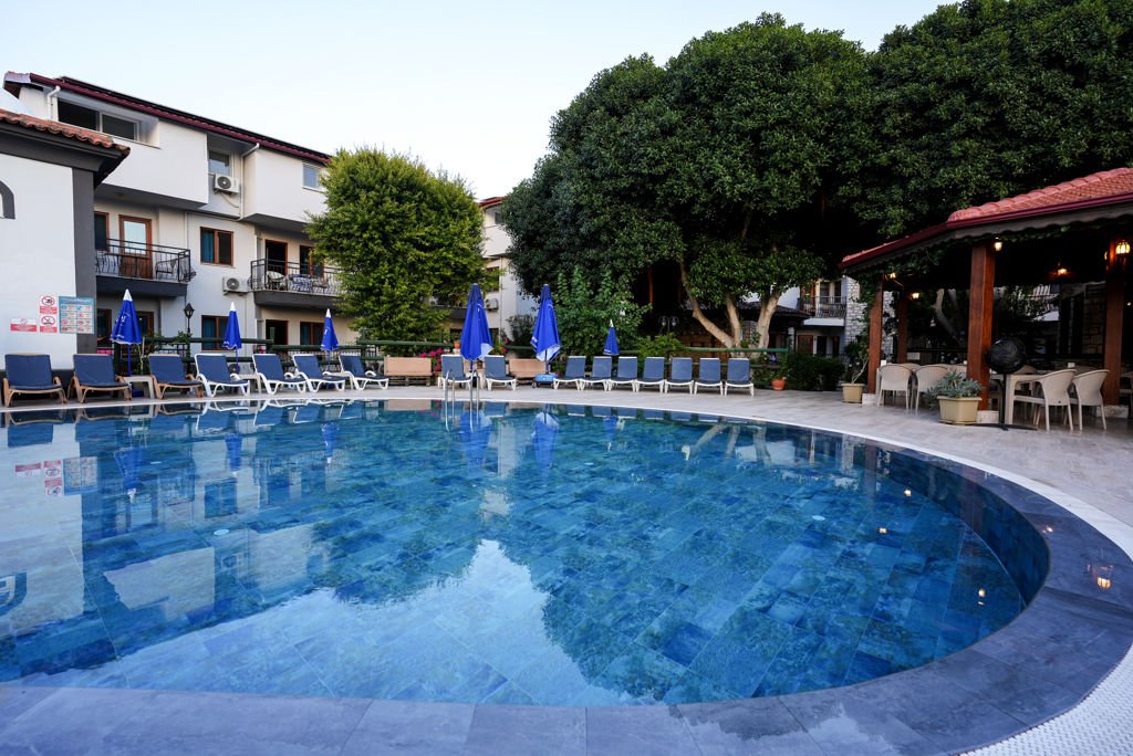 Sahin Villa Apart in Dalyan, Turkije, is een knusse, ontspannen plek voor een fijne vakantie aan de Egeïsche Kust. Deze accommodatie ligt net buiten het gezellige centrum van Dalyan en op een paar minuten lopen van de Dalyan rivier. Hier kun je heerlijk wandelen, lokale restaurants ontdekken, geweldige boottochtjes maken en genieten van een drankje aan het water – misschien spot je zelfs een paar beschermde Caretta Caretta schildpadden op weg naar het beroemde Iztuzu strand! Bij Sahin Villa Apart relax je in alle rust aan het royale zwembad onder de Turkse zon. Zin in een drankje? Er is een poolbar, dus je hebt alles bij de hand voor een perfecte chill-dag. Voor nóg meer ontspanning boek je een traditionele hamambehandeling in de sauna en het Turks bad, afsluitend met een heerlijke massage. Klinkt perfect toch? Je verblijft bij Sahin Villa Apart in ruime, nette studio's en appartementen, handig als je met het hele gezin reist. Sahin Villa Apart is ideaal voor wie op zoek is naar rust, comfort en de prachtige natuur van Dalyan!