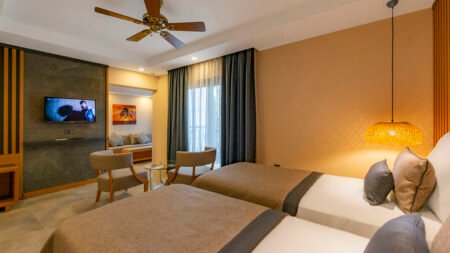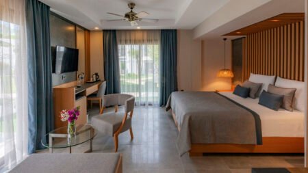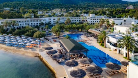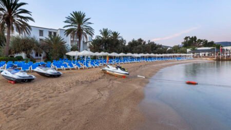 Zin in een zorgeloze vakantie aan zee? Bij Samara Hotel in de baai van Torba zit je helemaal goed. Dit stijlvolle vijfsterrenhotel combineert comfort met een fijne sfeer, en dat allemaal op een prachtige plek met uitzicht op het helderblauwe water. Zodra je aankomt, merk je het meteen: hier staat ontspanning centraal. Of je nu rustig wil relaxen aan het privéstrand, baantjes trekt in het zwembad of je laat verwennen in het wellnesscenter, bij Samara Hotel heb je alles bij de hand. De groene tuin, het uitzicht op de voorbijvarende gulets en de gastvrije service zorgen ervoor dat je je meteen thuis voelt. 's Avonds geniet je van een diner met uitzicht op zee en klinkt er misschien zelfs al wat livemuziek op de achtergrond. Van de eerste tot de laatste dag voelt het hier als pure verwennerij.