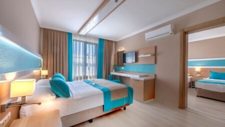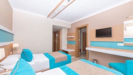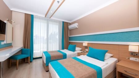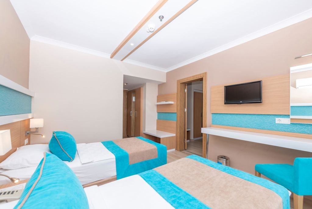 Zomer Wanneer je tussen 15-03-2026 en 30-11-2026 in deze accommodatie verblijft, is onderstaande informatie van toepassing. * Ligging * Gelegen aan het privéstrand * Ligbedden * Parasol * Dichtstbijzijnde winkel op circa 500 meter * Side op circa 2,5 kilometer * Algemeen & faciliteiten * 6 gebouwen * Maximaal 4 verdiepingen * 261 kamers * Receptie * 24 uur per dag * Lobby * 5 liften * Niet in elk gebouw een lift * Bagageruimte * Wifi in één van de openbare ruimtes * Meerdere winkels * Wasservice tegen betaling * Tuin * Restaurants & bars * Buffetrestaurant * 2 drinkgelegenheden * 2 bars * Activiteiten & ontspanning * Aerobics * Basketbal * Beachvolleybal * Boccia * Darts * Fitness * Tafeltennis * Spa Center * Sauna * Hamam behandelingen tegen betaling * Massages tegen betaling * Schoonheidsbehandelingen tegen betaling * Zwembaden * Buitenzwembad * Buitenzwembad voor kinderen * Zonneterras * Ligbedden met matrasjes * Parasol * Badhanddoekenservice gratis (wisselen tegen betaling) * Kinderfaciliteiten * Mini club (4-11 jaar) * 6 keer per week * Minidisco * Babybedje als preferentie toe te voegen in het boekingsformulier * Verzorging * All Inclusive * Ontbijt in buffetvorm (07.00-10.00 uur) * Laat ontbijt in buffetvorm (10.00-10.30 uur) * Lunch in buffetvorm (12.30-14.00 uur) * Diner in buffetvorm (19.00-21.00 uur) * Snacks (12.00-16.00 uur) * Koffie, thee & koekjes (11.00-17.00 uur) * IJs (11.00-17.00 uur) * Selectie lokale (non-)alcoholische drankjes (10.00-00.00 uur) * Tegen betaling: import drankjes, speciale wijnen en verse vruchtensappenHotelkamers * 2-persoonskamer Voordeel DE * Speciaal tarief * Locatie, formaat, uitzicht en/of faciliteiten kunnen afwijken ten opzichte van andere kamertypes * Oppervlakte tussen 14 en 16 m² * Airconditioning * Kluisje * Televisie * Telefoon tegen betaling * Eet- en drinkfaciliteiten * Minibar * Badkamer douche, toilet en föhn * Wifi tegen betaling * Balkon of terras * 2-persoonskamer Standaard DZ * Oppervlakte tussen 14 en 16 m² * Airconditioning * Kluisje * Televisie * Telefoon tegen betaling * Eet- en drinkfaciliteiten * Minibar * Badkamer douche, toilet en föhn * Wifi tegen betaling * Balkon of terras * Familiekamer Standaard FZ * Oppervlakte tussen 30 en 39 m² * 2 slaapkamers * Airconditioning * Kluisje * Televisie * Telefoon tegen betaling * Eet- en drinkfaciliteiten * Minibar * Badkamer douche, toilet en föhn * Wifi tegen betaling * Balkon of terras (zitje)
