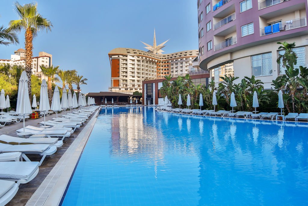 * Zomer Wanneer je tussen 29-03-2025 en 30-11-2025 in deze accommodatie verblijft, is onderstaande informatie van toepassing. * Ligging * Gelegen aan het privéstrand * Zandstrand * Ligbedden met matrasjes * Parasol * Dichtstbijzijnde restaurant op circa 1 kilometer * Dichtstbijzijnde bar op circa 1 kilometer * Lara op circa 10 kilometer * Antalya op circa 20 kilometer * Luchthaven op circa 15 kilometer * Algemeen & faciliteiten * 2 gebouwen * Maximaal 10 verdiepingen * 336 kamers * Receptie * 24 uur per dag * Lobby * 6 liften * Lift in elk gebouw * Bagageruimte * Wifi in diverse openbare ruimtes * Internetruimte * Meerdere winkels * Minimarkt * Doktersservice tegen betaling * Tuin * Privé parkeergelegenheid * Restaurants & bars * Buffetrestaurant * 2 snackbars * Roomservice tegen betaling * 5 drinkgelegenheden * 2 bars * Discobar * Lobbybar * Poolbar * Activiteiten & ontspanning * Aerobics * Basketbal * Beachvolleybal * Darts * Fitness * Midgetgolf * Tafeltennis * Tennis * Voetbal * Volleybal * Watersporten tegen betaling * Spafaciliteiten * Sauna * Turks stoombad * Massages tegen betaling * Schoonheidsbehandelingen tegen betaling * Gameroom toegang tegen betaling * Animatie * Shows * Livemuziek * Zwembaden * 3 buitenzwembaden * 2 buitenzwembaden voor kinderen * Glijbaan * Aquapark * Glijbaan * Binnenzwembad * Zonneterras * Ligbedden met matrasjes * Parasol * Badhanddoekenservice * Kinderfaciliteiten * Mini club (4-12 jaar) * Minidisco * Buitenspeeltuin * Lunapark * Babybedje * Verzorging * Ultra All Inclusive * Ontbijt in buffetvorm (07.00-10.00 uur) * Laat ontbijt in buffetvorm (10.00-11.00 uur) * Lunch in buffetvorm (12.30-14.30 uur) * Diner in buffetvorm (18.30-21.00 uur) * Snacks (12.00-16.00 uur) * Koffie, thee & koekjes (16.00-17.00 uur) * IJs (10.00-18.00 uur) * Middernachtsnack (00.00-01.00 uur) * Selectie lokale (non-)alcoholische drankjes (24 uur per dag) * Tegen betaling: dineren in alle à-la-carterestaurants, drankjes in flessen, import drankjes, champagne, verse vruchtensappen en roomserviceHotelkamers * 2-persoonskamer Standaard Landzicht DZL * Oppervlakte circa 28 m² * Landzicht * Airconditioning * Kluisje * Televisie * Telefoon tegen betaling * Eet- en drinkfaciliteiten * Koffie- en theefaciliteiten * Minibar * Badkamer bad en douche, toilet en föhn * Wifi * Balkon of terras (zitje) * 2-persoonskamer Standaard Zeezicht DZM * Oppervlakte van circa 28 m² * Zeezicht * Airconditioning * Kluisje * Televisie * Telefoon tegen betaling * Eet- en drinkfaciliteiten * Koffie- en theefaciliteiten * Minibar * Badkamer bad en douche, toilet en föhn * Wifi * Balkon of terras (zitje) * 2-persoonskamer Standaard Whirlpool DZJ * Oppervlakte van circa 28 m² * Zeezicht * Airconditioning * Kluisje * Televisie * Telefoon tegen betaling * Eet- en drinkfaciliteiten * Koffie- en theefaciliteiten * Minibar * Badkamer bad en douche, bubbelbad, toilet en föhn * Wifi * Balkon of terras (zitje) * 2-persoonskamer Terras Whirlpool DTJ * Oppervlakte circa 40 m² * Zeezicht * Airconditioning * Kluisje * Televisie * Telefoon tegen betaling * Eet- en drinkfaciliteiten * Koffie- en theefaciliteiten * Minibar * Badkamer bad en douche, toilet en föhn * Wifi * Terras * Familiekamer Standaard FZ * Oppervlakte van circa 40 m² * In duplexstijl * Meerdere slaapkamers * Airconditioning * Kluisje * Televisie * Telefoon tegen betaling * Eet- en drinkfaciliteiten * Koffie- en theefaciliteiten * Minibar * Badkamer bad en douche, toilet, föhn, badjassen en badslippers * Wifi * Balkon (zitje) * Zomer Wanneer je tussen 01-11-2025 en 30-11-2025 in deze accommodatie verblijft, is onderstaande informatie van toepassing. * Ligging * Gelegen aan het privéstrand * Zandstrand * Ligbedden met matrasjes * Parasol * Dichtstbijzijnde restaurant op circa 1 kilometer * Dichtstbijzijnde bar op circa 1 kilometer * Lara op circa 10 kilometer * Antalya op circa 20 kilometer * Luchthaven op circa 15 kilometer * Algemeen & faciliteiten * 2 gebouwen * Maximaal 10 verdiepingen * 336 kamers * Receptie * 24 uur per dag * Lobby * 6 liften * Lift in elk gebouw * Bagageruimte * Wifi in diverse openbare ruimtes * Internetruimte * Meerdere winkels * Minimarkt * Doktersservice tegen betaling * Tuin * Privé parkeergelegenheid * Restaurants & bars * Buffetrestaurant * 2 snackbars * Roomservice tegen betaling * 5 drinkgelegenheden * 2 bars * Discobar * Lobbybar * Poolbar * Activiteiten & ontspanning * Aerobics * Basketbal * Beachvolleybal * Darts * Fitness * Midgetgolf * Tafeltennis * Tennis * Voetbal * Volleybal * Watersporten tegen betaling * Spafaciliteiten * Sauna * Turks stoombad * Massages tegen betaling * Schoonheidsbehandelingen tegen betaling * Gameroom toegang tegen betaling * Animatie * Shows * Livemuziek * Zwembaden * 3 buitenzwembaden * 2 buitenzwembaden voor kinderen * Glijbaan * Aquapark * Glijbaan * Binnenzwembad * Zonneterras * Ligbedden met matrasjes * Parasol * Badhanddoekenservice * Kinderfaciliteiten * Mini club (4-12 jaar) * Minidisco * Buitenspeeltuin * Lunapark * Babybedje * Verzorging * Ultra All Inclusive * Ontbijt in buffetvorm (07.00-10.00 uur) * Laat ontbijt in buffetvorm (10.00-11.00 uur) * Lunch in buffetvorm (12.30-14.30 uur) * Diner in buffetvorm (18.30-21.00 uur) * Snacks (12.00-16.00 uur) * Koffie, thee & koekjes (16.00-17.00 uur) * IJs (10.00-18.00 uur) * Middernachtsnack (00.00-01.00 uur) * Selectie lokale (non-)alcoholische drankjes (24 uur per dag) * Tegen betaling: dineren in alle à-la-carterestaurants, drankjes in flessen, import drankjes, champagne, verse vruchtensappen en roomserviceHotelkamers * 2-persoonskamer Standaard Landzicht DZL * Oppervlakte circa 28 m² * Landzicht * Airconditioning gratis * Kluisje * Televisie * Telefoon tegen betaling * Eet- en drinkfaciliteiten * Koffie- en theefaciliteiten * Minibar * Badkamer bad en douche, toilet en föhn * Wifi * Balkon of terras (zitje) * 2-persoonskamer Standaard Zeezicht DZM * Oppervlakte van circa 28 m² * Zeezicht * Airconditioning gratis * K