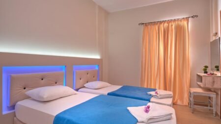 Dit hotel is dé hotspot voor jongeren die willen genieten van plezier, feesten en onvergetelijke momenten. Gelegen aan de hoofdstraat van het gezellige Laganas op Zakynthos, biedt het een rustige omgeving te midden van de actie, omringd door olijfbomen en een mooie tuin. Met twee zwembaden, waaronder één met een swim up bar, bestel je je favoriete drankje bij de vriendelijke barman. Snacks zijn makkelijk te halen bij de grote supermarkt tegenover het hotel. Kortom, ervaar hier het beste van beide werelden de bruisende energie van het uitgaansleven en de rust van de natuur.