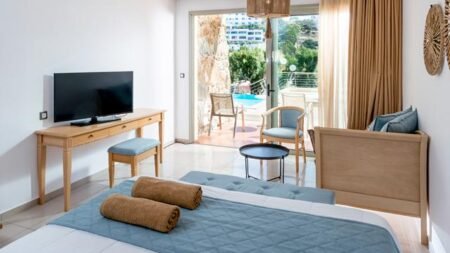Seaside A Lifestyle Resort is een ideale plek om vakantie te vieren en alleen voor volwassen gasten. Op dit mooie plekje met een adembenemend uitzicht kun je helemaal tot rust komen, gezellige activiteiten ondernemen met elkaar en simpelweg genieten. Het strand ligt op ongeveer 80 meter afstand, maar luieren in het zonnetje kan natuurlijk ook aan één van de twee zwembaden. De hamam en sauna zijn perfect voor wie nog net even wat meer ontspanning zoekt. Ook zijn nog eens alle drankjes en maaltijden inbegrepen. Zo hoef je je dus nergens druk om te maken en kun je niets anders doen dan alleen maar genieten van je welverdiende vrije tijd op het mooie Kreta!