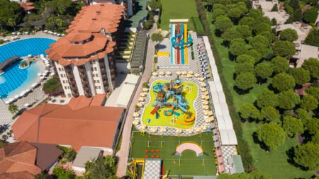 Direct naar: * Ligging () * Faciliteiten () * Restaurants & Bars () * Hotelkamers () * Sport & Ontspanning () * Kinderfaciliteiten () * Zwembaden & Strand () * Verzorging () Ligging: Selectum Family Resort * Direct aan het strand * Op ca. 3 kilometer van het centrum van Belek * Bushalte op ca. 50 meter Faciliteiten * 1 hoofdgebouw, 1 Garden gebouw en 177 bungalows * Maximaal 5 verdiepingen * Niet in elk gebouw is een lift aanwezig * 455 kamers * 24-uursreceptie * Bagageruimte * Lobby * Tuin * Gratis wifi in de openbare ruimtes * Kapsalon* * Winkels en minimarkt* * Roomservice* * Wasservice* * Doktersservice* * Privé parkeerterrein *Tegen betaling Restaurants & bars * 1 buffetrestaurant met kindergedeelte * 4 à-la-carterestaurants (vooraf reserveren) * 2 snackbars * Patisserie * 9 bars * Disco Hotelkamers * Standaardkamer kindvriendelijk hoofdgebouw (1-4 personen) * Ca. 17-25 m² * Gelegen in het hoofdgebouw * Telefoon* * Airconditioning * Televisie * Minibar * Kluisje * Koffie-/theezetfaciliteiten * Wifi * Douche * Toilet * Föhn * Badjas en slippers * Balkon of terras met zitje *Tegen betaling * Standaardkamer kindvriendelijk Nature (2 volw. + 2 kind.) * Ca. 25 m² * Dezelfde faciliteiten als de Standaardkamer * Standaardkamer kindvriendelijk Nature (2 volw. + 2 kind.) * Ca. 25 m² * Dezelfde faciliteiten als de Standaardkamer * Standaardkamer kindvriendelijk Nature Plus (4 personen) * Ca. 25 m² * Dezelfde faciliteiten als de Standaardkamer * Familie suite hoofdgebouw (2-4 personen) * Ca. 50-53 m² * Gelegen in het hoofdgebouw * Bestaat uit een woon-/slaapkamer met slaapbank en een slaapkamer * Dezelfde faciliteiten als de Standaardkamer * Familiekamer suite large hoofdgebouw (2-5 personen) * Ca. 64 m² * Gelegen in het hoofdgebouw * Bestaat uit een woon-/slaapkamer met slaapbank en 2 slaapkamers * Dezelfde faciliteiten als de Standaardkamer Sport & Ontspanning * Fitness * Aerobics * Yoga * Boogschieten * Basketbal * Beachvolleybal * Boccia * Darts * Minivoetbal * Biljart* * Tafeltennis * Tennis (verlichting en materiaal tegen betaling) * Minigolf * Bowlen* * Gameroom* * Watersporten aan het strand* * Turks bad * Sauna * Bubbelbad * Binnenzwembad * Massages en behandelingen* * Dagelijks entertainment *Tegen betaling Kinderfaciliteiten * 1 kinderzwembad met glijbanen (op vaste tijden geopend) * 1 kinderbuffetrestaurant voor lunch en diner * Miniclub (4-12 jaar) * Teenageclub (13-17 jaar, alleen in het hoogseizoen) * Minidisco * Speeltuin * Babysitservice op aanvraag en tegen betaling Zwembaden & Strand * 4 buitenzwembaden, waaronder een relax bad en een half olympisch zwembad * Aquapark met glijbanen (op vaste tijden geopend) * Zonneterras * Privéstrand * Ligbedden, matrasjes en parasols gratis (zwembad en strand) * Gratis badhanddoekenservice Verzorging Zomer : Selectum Family Resort * Verblijf o.b.v. Ultra All Inclusive: * Ontbijt in buffetvorm (07.00-10.00 uur) * Laat ontbijt in buffetvorm (10.00-10.30 uur) * Lunch in buffetvorm (12.30-14.30 uur) * Diner in buffetvorm (19.00-21.00 uur) * Snacks (12.00-16.00 uur) * Koffie/thee en koekjes (11.30-18.00 uur) * IJs (10.00-18.00 uur) * Nachtsnack (21.30-07.00 uur) * Tijdens je verblijf mag je 1x à-la-carte dineren in 1 van de 3 à-la-carterestaurants (vooraf reserveren) * Geselecteerde lokale (non-)alcoholische dranken en een selectie import dranken (24/7) * Tegen betaling: import drankjes en roomservice