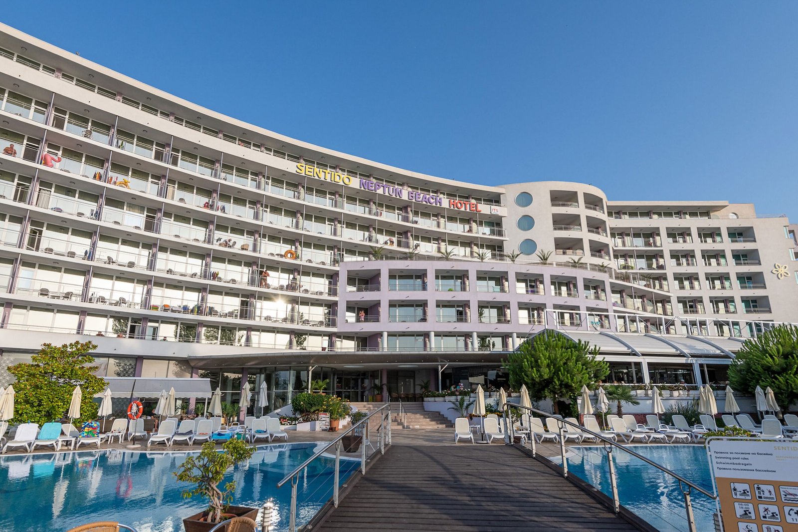 Gelegen in het hart van Sunny Beach met fantastisch uitzicht over de baai van Nessebar vind je Sentido Neptun Beach. In dit resort is het All Inclusive genieten voor jong en oud. Het hotel beschikt over ruime en moderne kamers die van alle gemakken zijn voorzien. Relax in de Bulgaarse zon met een verfrissend drankje aan de poolbar, of doe mee aan één van de vele activiteiten georganiseerd door het animatieteam. Dobber met je luchtbedje op het verkoelende zwembadwater of neem een duik in de heerlijke zee. Voor de kinderen is er ook genoeg te doen! Met een miniclub, een speeltuintje en natuurlijk de minidisco, zullen ze zich niet snel vervelen. Als je op zoek bent naar een tophotel op een toplocatie, is Sentido Neptun Beach de ideale keuze voor jouw vakantie in Bulgarije!