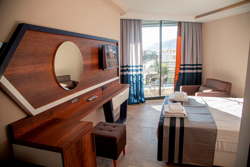 Winter Wanneer je tussen 01-11-2025 en 31-03-2026 in deze accommodatie verblijft, is onderstaande informatie van toepassing. * Ligging * Openbaar strand op circa 100 meter * Ligbedden met matrasjes tegen betaling * Parasol tegen betaling * Centrum van Alanya op circa 3 kilometer * Dichtstbijzijnde winkel op circa 1 kilometer * Dichtstbijzijnde restaurant op circa 100 meter * Dichtstbijzijnde bar op circa 100 meter * Bushalte op circa 100 meter * Algemeen & faciliteiten * Adults Only * 1 gebouw * Maximaal 6 verdiepingen * 70 kamers * Receptie * 24 uur per dag * Lobby * 7 liften * Wifi in alle openbare ruimtes * Restaurants & bars * Buffetrestaurant * Drinkgelegenheden * Poolbar * Zwembaden * Buitenzwembad * Gesloten in het winterseizoen * Zonneterras * Ligbedden met matrasjes * Parasol * Badhanddoekenservice * Verzorging * All Inclusive * Ontbijt in buffetvorm (07.30-10.00 uur) * Lunch in buffetvorm (12.30-14.00 uur) * Diner in buffetvorm (19.00-21.00 uur) * Snacks (16.00-17.00 uur) * Middernachtsnack (22.30-23.30 uur) * Selectie lokale (non-)alcoholische drankjes (11.00-23.00 uur) * Tegen betaling: import drankjes en cocktailsHotelkamers * 2-persoonskamer Standaard DZ * Oppervlakte van circa 18 m² * Airconditioning * Kluisje tegen betaling * Televisie * Telefoon tegen betaling * Eet- en drinkfaciliteiten * Koffie- en theefaciliteiten * Minibar tegen betaling * Badkamer met douche, toilet en föhn * Wifi * Balkon (zitje) * 2-persoonskamer Standaard DZ1 * Oppervlakte van circa 18 m² * Airconditioning * Kluisje tegen betaling * Televisie * Telefoon tegen betaling * Eet- en drinkfaciliteiten * Koffie- en theefaciliteiten * Minibar tegen betaling * Badkamer met douche, toilet en föhn * Wifi * Balkon (zitje) * 2-persoonskamer Standaard DZ2 * Oppervlakte van circa 18 m² * Airconditioning * Kluisje tegen betaling * Televisie * Telefoon tegen betaling * Eet- en drinkfaciliteiten * Koffie- en theefaciliteiten * Minibar tegen betaling * Badkamer met douche, toilet en föhn * Wifi * Balkon (zitje)