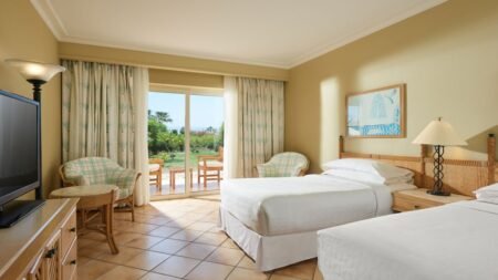 Sheraton Soma Bay is een prachtig 5-sterrencomplex dat je meteen het gevoel geeft in een oase van luxe te verblijven. Gelegen direct aan het zandstrand, kun je hier niet alleen genieten van de zon, maar ook van allerlei wateractiviteiten, van duiken en snorkelen tot (kite)surfen. Het resort heeft een unieke uitstraling, met architectuur die doet denken aan de oude Egyptische tempels, wat je vakantie extra bijzonder maakt. Dankzij de uitstekende faciliteiten voor jong en oud is het de perfecte bestemming voor zowel stellen als gezinnen. Tijdens je verblijf kun je kiezen voor halfpension, maar de All Inclusive optie maakt het helemaal compleet. Terwijl je kinderen zich vermaken in de miniclub of bij het kinderbad, kun jij lekker ontspannen of deelnemen aan de vele activiteiten die het resort te bieden heeft. Of je nu van avontuur houdt of juist op zoek bent naar rust, Sheraton Soma Bay biedt alles voor een onvergetelijke vakantie!