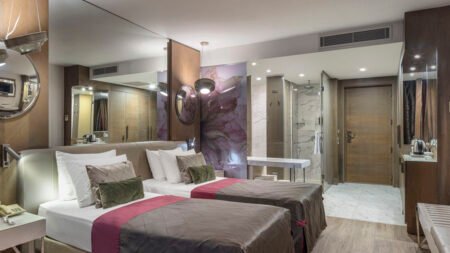 Side Star Elegance was het 1e 5-sterren hotel in de regio Side en is sinds de opening al jaren favoriet onder Nederlandse reizigers die niet voor niets telkens weer terugkeren. Het hotel is onderdeel van de Side Star hotelgroep en hier staan service en kwaliteit hoog in het vaandel. Het personeel In Side Star Elegance zorgt ervoor dat je niets te kort komt en laat je een onvergetelijke vakantie beleven! Smakelijk eten doe je in het uitgebreide buffetrestaurant waar geregeld thema-avonden plaatsvinden en voor de fijnproevers zijn er óók nog eens 5 à-la-carterestaurants. Tussendoor blijf je smullen van al het lekkers, zo kun je terecht voor een snack bij de beach bar of juist voor zoete lekkernijen in de patisserie. Alsof dat nog niet genoeg is, zijn er 7 bars waar je drankjes kunt halen. Met meerdere zwembaden vind je hier altijd een plekje onder de zon of juist in de schaduw bij het fijne zwembad omgeven door tropische bomen en planten. De kinderen roetsjen ondertussen van de glijbaan en worden vermaakt bij de kidsclub. Side Star Elegance heeft een ideale locatie met een privéstrand voor de deur, waar je uitkijkt over het turquoise water van de Middellandse zee. Je loopt zó met een verkoelend drankje in je hand door de tuin het strand op. Slenter ook eens langs de boulevard en maak een gezellige avondwandeling naar het levendige centrum van Side. Wil je wat meer luxe tijdens je verblijf? Boek dan een kamer met een bubbelbad en ligbedden op het terras. Of wat dacht je van een swim-upkamer, zodat je direct vanaf je balkon het zwembad in plonst? Het kan allemaal in dit elegante hotel. Hotel Side Star Elegance staat garant voor een heerlijke Ultra All Inclusive vakantie!
