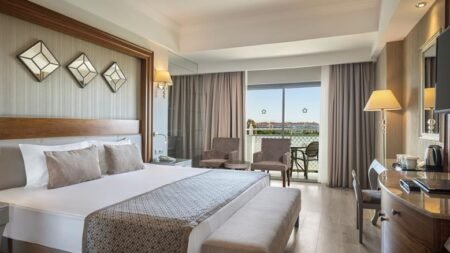 In dit luxe 5 sterrenhotel aan de kust vind je geen verveling. Gelegen op een prachtige locatie vlakbij de zee, biedt het een ideale mix van ontspanning en avontuur. Ontspan in een traditioneel Turks bad of wandel naar het ruime privézandstrand. Leg je handdoek uit op een comfortabel ligbedje en geniet van een goed boek. Terwijl jij ontspant, vermaken de kinderen zich met de glijbanen bij het zwembad of in de miniclub. Voor wat meer avontuur kun je de nabijgelegen Romeinse opgravingen in de oude stad verkennen en de rijke geschiedenis van de regio ontdekken.