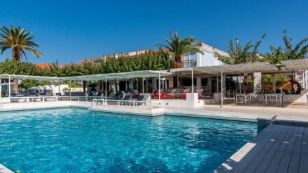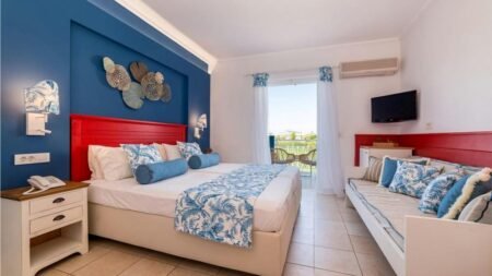 Dit Adults Only verblijf ligt heerlijk rustig, maar wel op loopafstand van het brede zandstrand en het gezellige centrum met winkels en barretjes. De typisch Griekse vakantiesfeer verwelkomt je lichte gebouwen, groene tuinen en een fijn zwembad waar je zo de hele dag blijft hangen. Met een poolbar, restaurant en comfortabele loungeplekken heb je alles bij de hand. 's Avonds geniet je van een drankje aan de bar of wandel je zo het centrum in voor een gezellige avond. Precies zoals vakantie hoort te zijn.