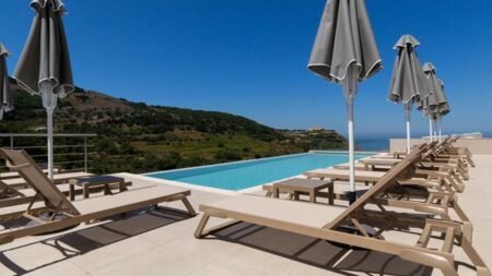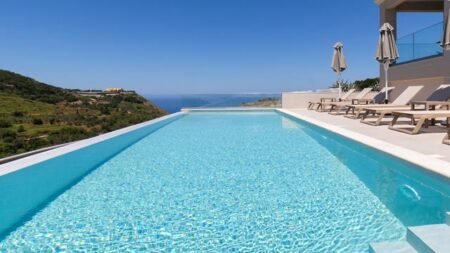 Beleef de ultieme ontspanning bij Sky View Suites Kefalonia. Deze prachtige accommodatie ligt aan Petani Bay, een van de mooiste stranden van Kefalonia. Geniet van moderne, stijlvol ingerichte suites die van alle gemakken zijn voorzien voor een zorgeloze vakantie. Duik na het ontbijt in het verkoelende zwembad of ontspan op een ligbed en ervaar een gevoel van ultieme privacy en rust. De naam zegt het al; het uitzicht over de azuurblauwe zee is prachtig.