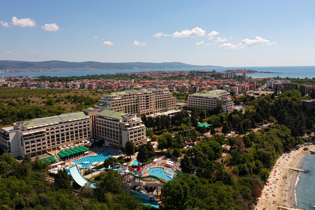 Zomer Wanneer je tussen 01-05-2025 en 30-09-2025 in deze accommodatie verblijft, is onderstaande informatie van toepassing. * Ligging * Gelegen aan het privéstrand * Zandstrand * Ligbedden gratis * Parasol gratis * Centrum van Nessebar op circa 1 kilometer * Dichtstbijzijnde winkel op circa 200 meter * Dichtstbijzijnde restaurant op circa 1 kilometer * Dichtstbijzijnde bar op circa 1 kilometer * Sunny Beach op circa 6 kilometer * Bushalte op circa 200 meter * Algemeen & faciliteiten * 1 gebouw * Maximaal 8 verdiepingen * 363 kamers * Receptie * 24 uur per dag * Lobby * 3 liften * Bagageruimte * Wifi in diverse openbare ruimtes * Winkel (minimarkt) * Wasservice tegen betaling * Doktersservice tegen betaling * Tuin * Privé parkeergelegenheid tegen betaling * Restaurants & bars * 5 buffetrestaurants * 2 snackbars * 8 drinkgelegenheden * 6 bars * Lobbybar * Poolbar * Activiteiten & ontspanning * Aerobics * Basketbal * Biljart tegen betaling * Boccia * Boogschieten * Bowling tegen betaling * Darts * Fitness * Tafeltennis * Tennis tegen betaling * Voetbal * Volleybal * Watersporten * Yoga * Spa Center * Binnenzwembad * Sauna tegen betaling * Hamam tegen betaling * Bubbelbad binnen tegen betaling * Massages tegen betaling * Schoonheidsbehandelingen tegen betaling * Kapsalon tegen betaling * Fitnessruimte * Gameroom * Animatie * 7 keer per week * Shows * 7 keer per week * Zwembaden * 3 buitenzwembaden * Zoetwater * Eén van deze zwembaden heeft een glijbaan * Eén van deze zwembaden heeft 5 glijbanen * 2 buitenzwembaden voor kinderen * Zoetwater * Eén van deze zwembaden heeft 2 glijbanen * Meerdere zonneterrassen * Badhanddoekenservice gratis * Kinderfaciliteiten * Mini club (4-12 jaar) * 7 keer per week * Minidisco * Buitenspeeltuin * Babybedje op aanvraag via ons contact center * Verzorging * All Inclusive * Ontbijt in buffetvorm (07.30-10.00 uur) * Lunch in buffetvorm (12.30-14.30 uur) * Diner in buffetvorm (18.00-21.00 uur) * Snacks (11.00-16.00 uur) * Koffie, thee & koekjes (15.00-18.00 uur) * IJs (11.00-16.00 uur) * Middernachtsnack (22.00-23.00 uur) * Selectie lokale (non-)alcoholische drankjes (10.00-23.00 uur) * Niet inbegrepen: * Drankjes in flessen * Geïmporteerde drankjes * Verse vruchtensappenHotelkamers * 2-persoonskamer Standaard (Park View) DZ * Oppervlakte circa 30 m² * Airconditioning * Kluisje tegen betaling * Televisie * Telefoon tegen betaling * Eet- en drinkfaciliteiten * Minibar tegen betaling * Badkamer met bad of douche, toilet en föhn * Wifi * Balkon (zitje) * 2-persoonskamer Standaard Zeezicht DZM * Oppervlakte circa 31 m² * Zeezicht * Airconditioning * Kluisje tegen betaling * Televisie * Telefoon tegen betaling * Eet- en drinkfaciliteiten * Minibar tegen betaling * Badkamer met bad of douche, toilet en föhn * Wifi * Balkon (zitje) * Familiekamer Standaard (Park View) FZ * Oppervlakte circa 56 m² * Airconditioning * Kluisje tegen betaling * Televisie * Telefoon tegen betaling * Eet- en drinkfaciliteiten * Koelkast * Badkamer met douche in bad, toilet en föhn * Wifi * Balkon (zitje) * Familiekamer Standaard Zeezicht FZM * Oppervlakte circa 56 m² * Zeezicht * Airconditioning * Kluisje tegen betaling * Televisie * Telefoon tegen betaling * Eet- en drinkfaciliteiten * Koelkast * Badkamer met douche in bad, toilet en föhn * Wifi * Balkon (zitje)