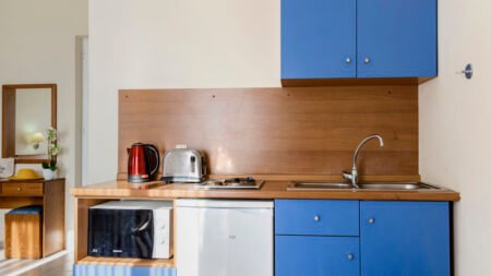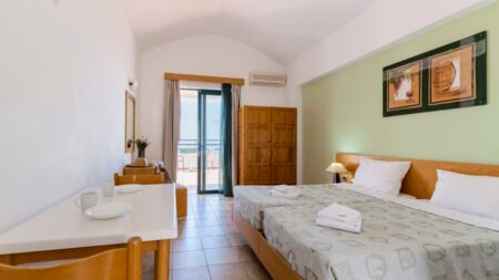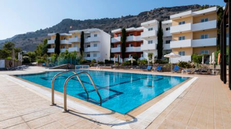 Stella Aparthotel op Rhodos is een fijne accommodatie in het gezellige plaatsje Pefkos. Het hotel ligt op slechts 500 meter van het strand en biedt een ideale uitvalsbasis om de omgeving te verkennen. Het charmante stadje Lindos, met zijn witte huisjes en indrukwekkende Akropolis, ligt op slechts 5 kilometer afstand. De studio's en appartementen van het hotel zijn ruim en comfortabel ingericht, wat zorgt voor een ontspannen verblijf. Bij het buitenzwembad en het kinderzwembad kun je heerlijk afkoelen en genieten van de Griekse zon. Voor een snelle hap of een verfrissend drankje kun je terecht bij de snackbar van het hotel. Dankzij de rustige ligging en goede faciliteiten is Stella Aparthotel een uitstekende keuze voor wie op zoek is naar een ontspannen vakantie met de mogelijkheid om het mooie eiland Rhodos te ontdekken!