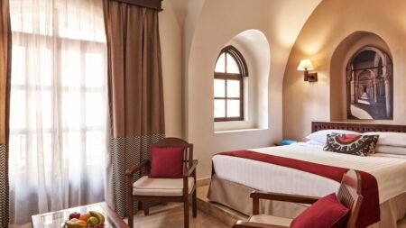 Sultan Bey is het ideale vakantieadres voor wie op zoek is naar rust en comfort met een uitstekende prijs-kwaliteitverhouding. Gelegen aan een privéstrand met een adembenemend uitzicht over de lagune, is dit de perfecte plek om volledig tot rust te komen. De kamers met uitzicht op de lagune zorgen voor een extra relaxte sfeer, terwijl de Finger's Secret Health Spa je verwent met ontspannende behandelingen. Bovendien ligt de beroemde 18-holes golfbaan op korte afstand, voor wie een sportieve uitdaging zoekt. Het hotel biedt niet alleen een privéstrand, maar ook een buitenzwembad en een apart kinderzwembad voor waterplezier voor het hele gezin. Met de stad El Gouna op slechts 4 kilometer afstand, kun je gemakkelijk de lokale cultuur en sfeer proeven. Of je nu de zon opzoekt, deelneemt aan een leuke activiteit, of gewoon geniet van het uitzicht, Sultan Bey zorgt voor een zorgeloze vakantie met alles binnen handbereik.