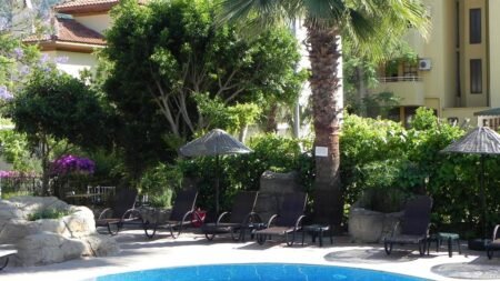 In het kleinschalige appartementencomplex word je warm onthaald door het vriendelijke personeel. Hier geniet je van de echte Turkse gastvrijheid. Na je zelfgemaakte ontbijt wandel je door de prachtige tropische tuin richting de binnenplaats waar het zwembad zich bevindt. Plof neer op het bedje en zonnen maar. Hier lees je dat goede boek in één keer uit. 's Avonds maak je in je appartement een lekkere maaltijd klaar of kies je voor een lekker gerecht in het restaurant. Je kijkt voldaan terug op een heerlijke dag. Vakantie!