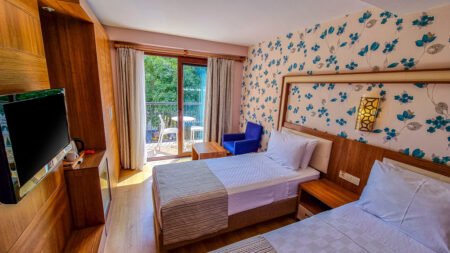Zomer Wanneer je tussen 18-04-2025 en 31-10-2025 in deze accommodatie verblijft, is onderstaande informatie van toepassing. * Ligging * Privéstrand op circa 700 meter * Ligbedden met matrasjes * Parasol * Openbaar strand Belcekiz op circa 150 meter * Centrum van Hisarönü op circa 3 kilometer * Dichtstbijzijnde restaurant op circa 10 meter * Dichtstbijzijnde bar op circa 10 meter * Bushalte (op loopafstand) * Algemeen & faciliteiten * 11 gebouwen * Maximaal 2 verdiepingen * 203 kamers * Receptie * Lobby * Lift * Niet in elk gebouw een lift * Bagageruimte * Wifi in alle openbare ruimtes * Wasservice tegen betaling * Tuin * Openbare parkeergelegenheid tegen betaling * Restaurants & bars * Buffetrestaurant * 2 à-la-carterestaurants * Snackrestaurant * Roomservice tegen betaling * 3 drinkgelegenheden * 2 bars * Lobbybar * Activiteiten & ontspanning * Aerobics * Biljart * Darts * Fitness * Tafeltennis * Yoga * Spa Center * Sauna * Hamam * Massages tegen betaling * Animatie * 6 keer per week * Shows * 6 keer per week * Livemuziek * Eén keer per week * Zwembaden * 2 buitenzwembaden * Adult pool * Olympisch zwembad * Bij één van deze zwembaden geldt een minimumleeftijd van 16 jaar * Buitenzwembad voor kinderen * Zonneterras * Ligbedden met matrasjes * Parasol * Badhanddoekenservice * Kinderfaciliteiten * Mini club (4-12 jaar) * 6 keer per week * Babybedje * Verzorging * All Inclusive * Ontbijt in buffetvorm (07.00-10.00 uur) * Laat ontbijt in buffetvorm (10.00-10.30 uur) * Lunch in buffetvorm (12.30-14.30 uur) * Diner in buffetvorm (19.00-21.30 uur) * Snacks (12.30-16.00 uur) * Koffie, thee & koekjes (10.00-17.00 uur) * IJs (12.30-16.00 uur) * Middernachtsnack (23.00-00.00 uur) * Selectie geïmporteerde alcoholische drankjes (10.00-00.00 uur) * Selectie lokale (non-)alcoholische drankjes (10.00-00.00 uur) * Tegen betaling: verse vruchtensappenHotelkamers * 2-persoonskamer Superior DS * Oppervlakte van circa 18 m² * Airconditioning * Kluisje * Satelliettelevisie * Telefoon tegen betaling * Eet- en drinkfaciliteiten * Koffie- en theefaciliteiten * Minibar * Badkamer inloopdouche, toilet en föhn * Wifi * Balkon of terras (zitje) * 2-persoonskamer Superior DS1 * Oppervlakte van circa 21 m² * Airconditioning * Kluisje * Satelliettelevisie * Telefoon tegen betaling * Eet- en drinkfaciliteiten * Koffie- en theefaciliteiten * Minibar * Badkamer inloopdouche, toilet en föhn * Wifi * Balkon of terras (zitje) * Familiekamer Superior FS * Oppervlakte van circa 35 m² * Airconditioning * Kluisje * Satelliettelevisie * Telefoon tegen betaling * Eet- en drinkfaciliteiten * Koffie- en theefaciliteiten * Minibar * Badkamer inloopdouche, toilet en föhn * Wifi * Balkon of terras (zitje)