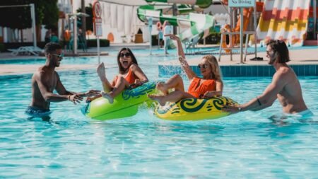 Met maar liefst 12 glijbanen, Strand aan je voeten, Extra ijsje? All Inclusive!, Waterpret voor groot en klein, Als Cleopatra op je ligbed, Ontspannen in de wellness & inclusief transfers.