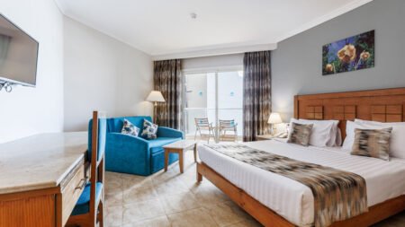 Voor wie houdt van glijbanen, zon en comfort is Sunrise Solara Aqua Park een schot in de roos. Dit fijne viersterrenhotel ligt vlak bij Hurghada en heeft alles in huis voor een vakantie vol afwisseling. Het indrukwekkende aquapark met talloze glijbanen is een waar speelparadijs voor jong en oud. Extra pluspunt: je mag ook gebruikmaken van de faciliteiten van het naastgelegen Sunrise Alora Aqua Park. Terwijl de kinderen zich vermaken in de miniclub, kom jij helemaal tot rust in de spa. Of je nu komt om te relaxen of juist actief bezig wilt zijn, hier zit je goed. Doe mee met aerobics, leef je uit in de fitnessruimte of pak een drankje aan het zwembad. Er zijn meerdere à-la-carterestaurants met smaken uit verschillende keukens en het strand ligt op loopafstand. Sunrise Solara Aqua Park is een heerlijke plek voor een complete familievakantie aan de Rode Zee.