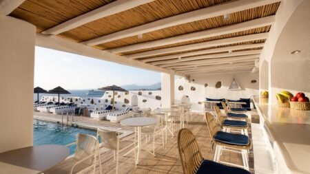 Dit sfeervolle, recent gerenoveerde hotel in traditionele Cycladische stijl verwelkomt je met zijn witte muren en blauwe accenten. Het vriendelijke personeel zorgt ervoor dat je je meteen thuis voelt. Op het dakterras vind je een prachtig zwembad met uitzicht op de Egeïsche Zee. Perfect voor ontspanning op een ligbed in de zon of in de schaduw. Op sommige avonden zorgt livemuziek voor een gezellige sfeer. Het hotel ligt op slechts tien minuten lopen van het levendige centrum, waar je charmante straatjes, gezellige winkels en restaurants ontdekt. En waar je natuurlijk de iconische windmolens bewondert.