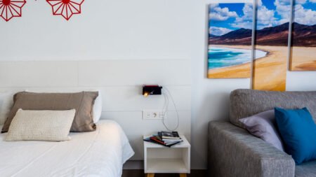 Taimar Hotel ligt op het Canarische eiland Fuerteventura en heeft alles wat je nodig hebt om je welverdiende vakantie onder de Spaanse zon te vieren. Een oase van rust en op ongeveer een kilometer van het strand waaar je een heerlijke duik in het kristalheldere zeewater kunt nemen of één van de watersporten die je bij het strand vindt. Bezoek anders de zandduinen van Corralejo Natural Park, je waant je in een woestijn. En dat onder de Spaanse zon! Wat dacht je van Isla de Lobos, waar je met een veerboot heenreist. Je mag natuurlijk ook lekker in het hotel blijven: neem een verfrissende duik in het zwembad, neem een lekker koel drankje, lees dat ene boek waar je ooit aan begonnen bent en doe even he-le-maal niets. Je verblijft op basis van halfpension, maar je kunt ook kiezen voor (Ultra) All Inclusive. Geen keuzestress met je drankjes. TIP: boek deze vakantie als Fly & Go * Gemak voorop: pakketreis met vlucht + deze accommodatie + huurauto * De verzekering voor je auto is geregeld * Vrijheid en avontuur: ontdek in je eigen tempo je vakantiebestemming Bekijk deze Fly & Go vakantie ()