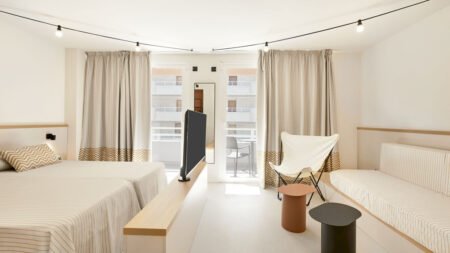 De regio Calvia staat bekend om zijn levendigheid en gezelligheid, waardoor het de ideale vakantiebestemming is op het prachtige eiland Mallorca. Het nieuwe Tent Calvia Beach Hotel valt op door zijn uitzonderlijke ontwerp en biedt een perfecte mix van comfort, ontspanning en functionaliteit. Dit hotel is de perfecte uitvalsbasis voor het verkennen van het eiland Mallorca. De ligging op korte afstand van het strand maakt het gemakkelijk om te genieten van zonnige dagen aan de kust. Tent Calvia Beach beschikt over een restaurant waar je kunt genieten van diverse maaltijden en een bar waar je kunt ontspannen met verfrissende drankjes. Ontdek de relaxte sfeer van Mallorca bij Tent Calvia Beach, waar de nadruk ligt op een zorgeloos verblijf tijdens jouw welverdiende vakantie!