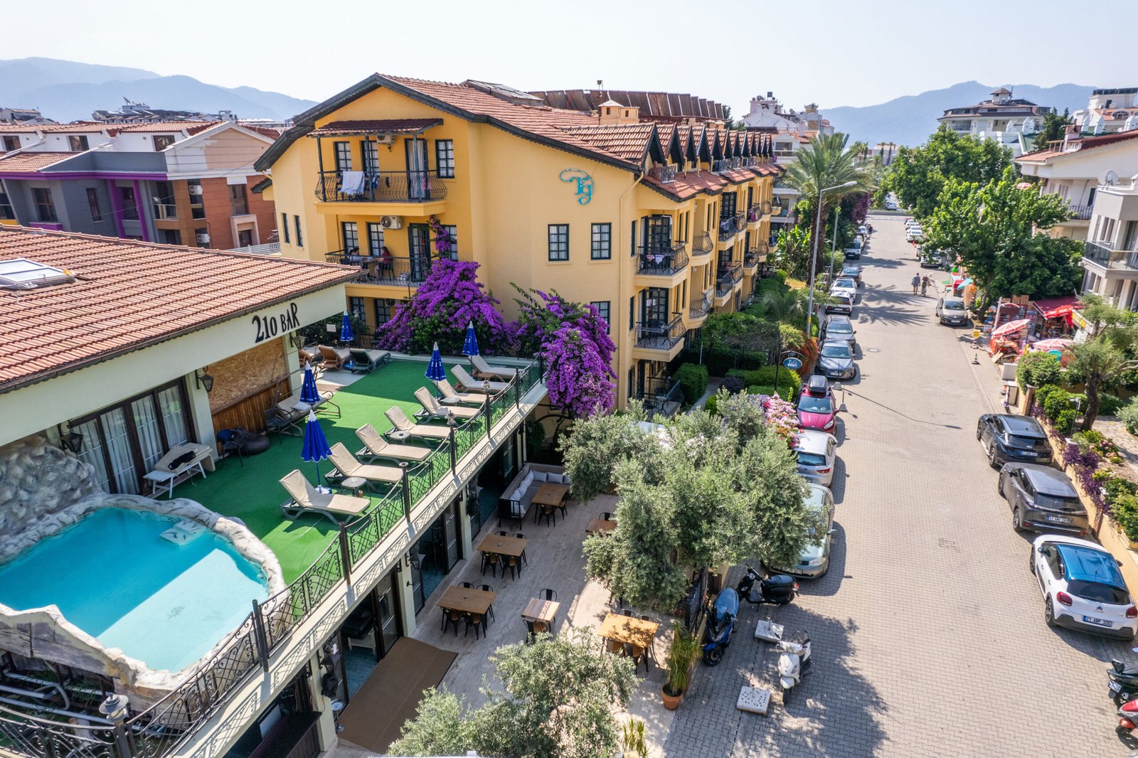 Direct naar: * Ligging () * Faciliteiten () * Restaurants & bars () * Zwembaden () * Hotelkamers () * Activiteiten & ontspanning () * Kinderfaciliteiten () * Verzorging () Ligging T&G Appartementen * Gelegen in het centrum van Marmaris * Strand op ca. 200 meter * Winkels op ca. 100 meter * Restaurants en bars op ca. 200 meter * Bushalte op ca. 50 meter Faciliteiten * 2 gebouwen met maximaal 3 verdiepingen * Er zijn geen liften aanwezig * 50 appartementen * 24-uursreceptie * Lobby * Tuin * Wifi in de lobby, de bar en bij het zwembad Restaurants & bars * 1 à-la-carterestaurant * 1 bar Zwembaden * 1 buitenzwembad * Zonneterras * Ligbedden, matrasjes en parasols gratis (zwembad) Hotelkamers * 2-kamerappartement (1-4 personen) * Ca. 36 m² * Bestaat uit een woon-/slaapkamer en aparte slaapkamer * Airconditioning* * Kitchenette * Kookplaat * Broodrooster * Koelkast * Kluisje* * Koffie-/theezetfaciliteiten * Wifi * Douche * Toilet * Föhn * Balkon of terras met zitje *Tegen betaling Activiteiten & ontspanning * Watersporten aan het strand* *Tegen betaling Kinderfaciliteiten * 1 kinderzwembad Verzorging Zomer: T&G Appartementen * Verblijf o.b.v. Logies