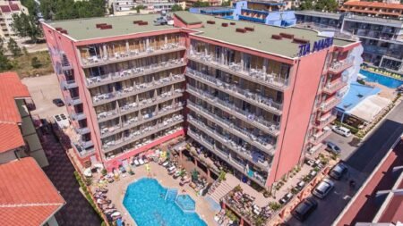 Tia Maria biedt je een zorgeloze vakantie nabij het strand van Sunny Beach en op slechts 3 km van het centrum van Nessebar. De ruime (familie)kamers, diverse sportfaciliteiten en het verkoelende zwembad maken het een heerlijk verblijf. Je kunt zelfs All Inclusive bijboeken! Ga jij dit ook jaar voor de Bulgaarse zon? TIP: boek deze vakantie als Fly & Go * Gemak voorop: pakketreis met vlucht + deze accommodatie + huurauto * Je huurauto staat bij aankomst klaar op de luchthaven * De verzekering voor je auto is geregeld * Vrijheid en avontuur: ontdek in je eigen tempo je vakantiebestemming Bekijk deze Fly & Go vakantie ()