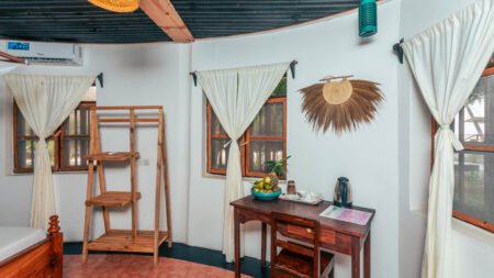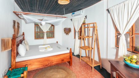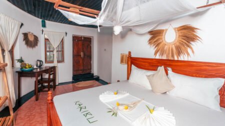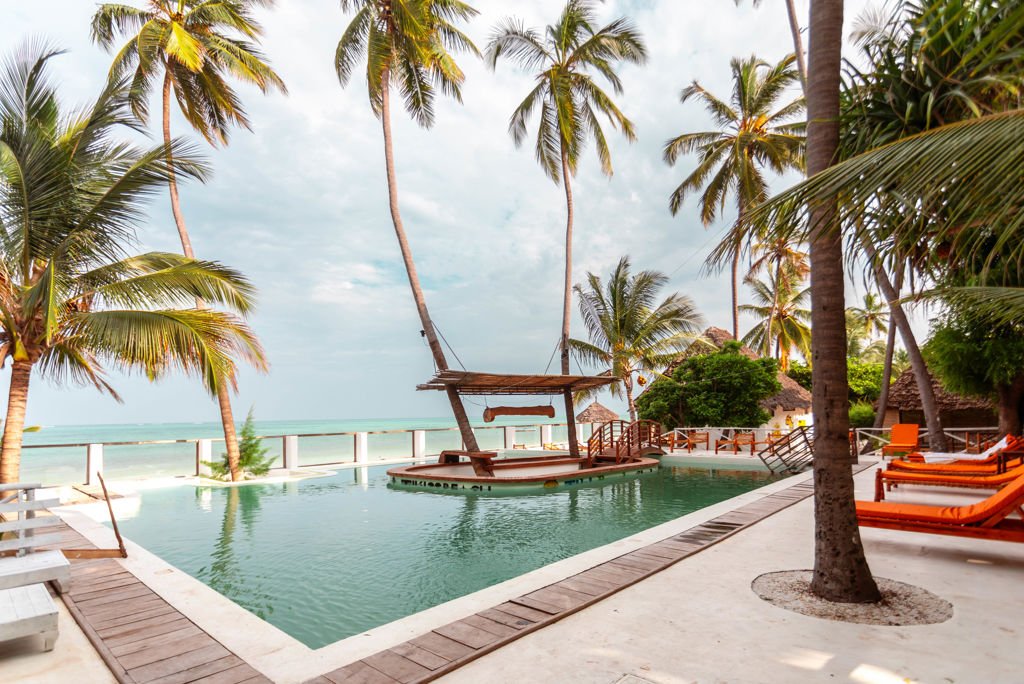 Tiki Beach Club & Resort, perfect gelegen in het hart van Bwejuu en direct aan het prachtige privéstrand, verwelkomt je vanaf het moment van aankomst met een gevoel van thuis. Begin je dag met een heerlijk ontbijtbuffet en geniet daarna van de zon op een ligbedje bij het zwembad of op het strand. Voor wie actief wil zijn, zijn er surf- of kitesurflessen beschikbaar, terwijl ontspanning wacht met massages op het strand. Of je nu op zoek bent naar plezier of ontspanning, hier vind je de optimale mix.