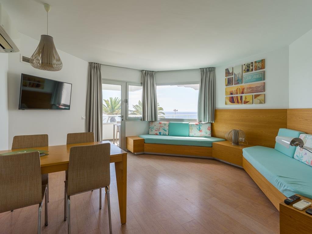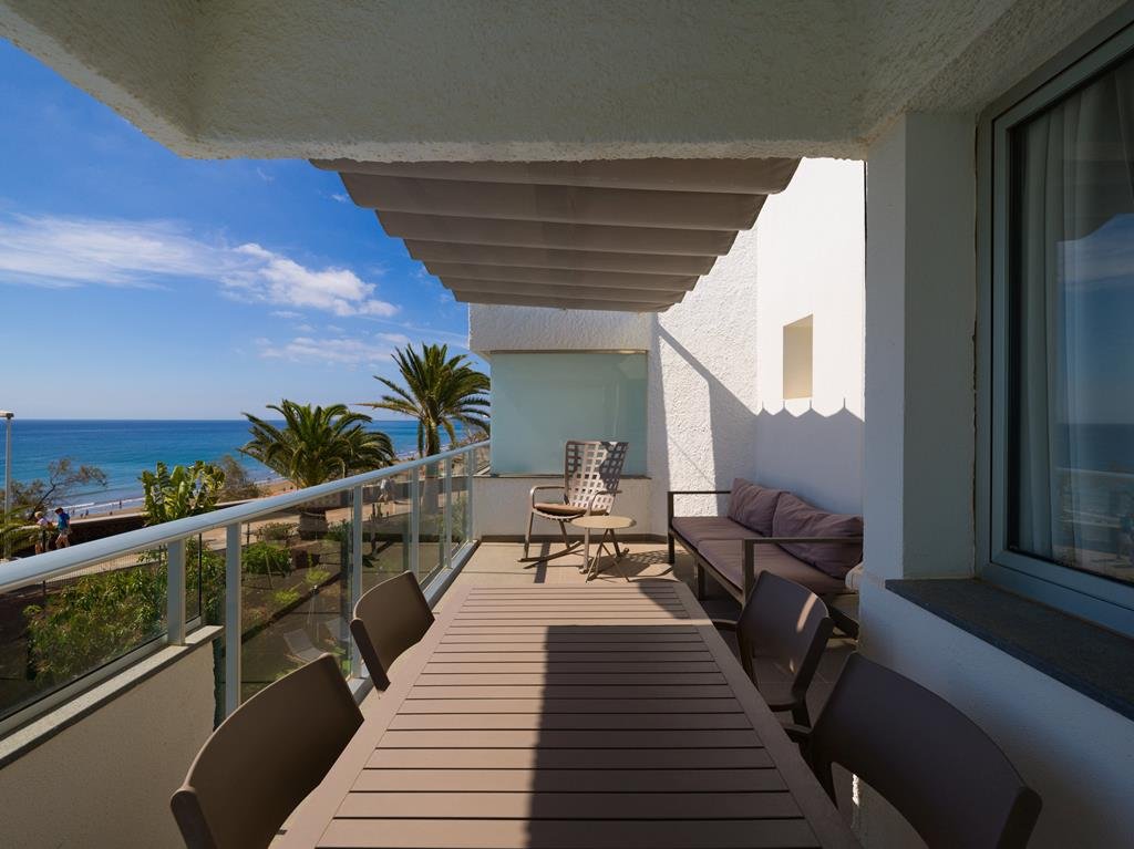 In een modern appartement, Met het comfort van thuis, Broodjesservice in de ochtend, Aan de boulevard van Playa, Plof neer op de balkonstoelen, Onafhankelijk duurzaamheidslabel & inclusief transfers.