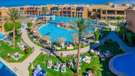 Het Titanic Palace & Aqua Park is het ideale familieresort aan de Rode Zee! Dit 5-sterren hotel, gebouwd in Griekse stijl, ligt direct aan het privéstrand en biedt alles wat je nodig hebt voor een zorgeloze vakantie. Kinderen kunnen zich helemaal uitleven in het geweldige aquapark met 8 glijbanen, terwijl jij kunt genieten van de zon en het uitzicht op zee. Met meerdere zwembaden en een Spa Center is er voor iedereen genoeg ruimte om te ontspannen. Naast waterpret biedt het hotel ook een breed scala aan eet- en drinkmogelijkheden, met 2 buffetrestaurants en 4 à-la-carterestaurants. Het enthousiaste animatieteam zorgt ervoor dat de kinderen zich geen moment vervelen, terwijl jij kunt genieten van een rustige middag of een verfrissend drankje aan de bar. Kortom, het Titanic Palace & Aqua Park biedt de perfecte balans tussen avontuur, ontspanning en plezier voor het hele gezin!
