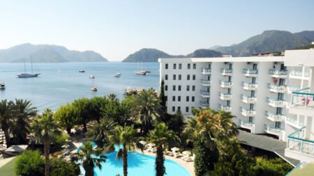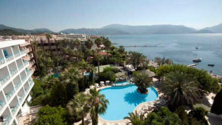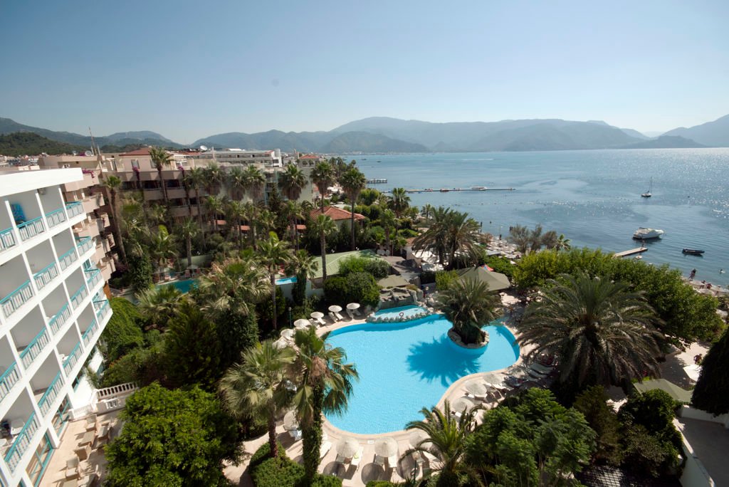 Het Tropical Beach hotel heeft een toplocatie aan het privéstrand en biedt gasten het beste van twee werelden: de levendigheid van het centrum van Marmaris en een ontspannen vakantie aan de Turkse kust. Breng de dagen door rondom het zwembad in de Turkse zon of op het eigen privéstrand van het hotel. Er is in Tropical Beach zelfs een kleine spa voor dat extra beetje ontspanning! De kamers in het hotel zijn licht en modern en met het All Inclusive pakket hoef je niet eens de deur uit voor een maaltijd of drankje. Als je toch de omgeving wilt verkennen, is de locatie van het hotel aan de hoofdweg perfect. Zowel het bruisende centrum van Marmaris als het gezellige Icmeler liggen op korte afstand. Het Tropical Beach hotel voldoet aan alle eisen van koppels en vrienden die op zoek zijn naar een serene only adult sfeer. Wanneer mogen wij jou hier verwelkomen?