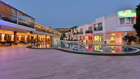 Bij Tropicana Beach zit je helemaal goed als je op zoek bent naar een ontspannen vakantie in een kleinschalig en sfeervol appartementencomplex. Dit charmante adresje ligt pal aan de Gumbet-baai, met het strand letterlijk voor de deur. Vanuit het ruime zwembad kijk je uit over de azuurblauwe zee, terwijl je geniet van de relaxte sfeer. De groene tuin, de fijne ligging en het gastvrije personeel zorgen ervoor dat je je hier meteen thuis voelt. Het appartementencomplex wordt gerund door een vriendelijke familie en dat merk je in alles: persoonlijke service, oog voor detail en een warme sfeer. Met slechts 57 studio's en appartementen is het hier nooit massaal. Overdag neem je een frisse duik, wandel je naar het centrum voor een terrasje of scoor je een leuk souvenir. En 's avonds is het heerlijk nagenieten bij het restaurant of met een drankje op het terras. Tropicana Beach is een fijne plek voor koppels en gezinnen die willen genieten van zon, zee en het echte Bodrum-gevoel.